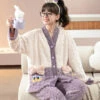 - Trois pièces : haut, pantalon et peignoir