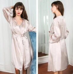 Connaissez vous un vĂŞtement de nuit aussi doux et Ă©lĂ©gant que notre ensemble en soie ?Â