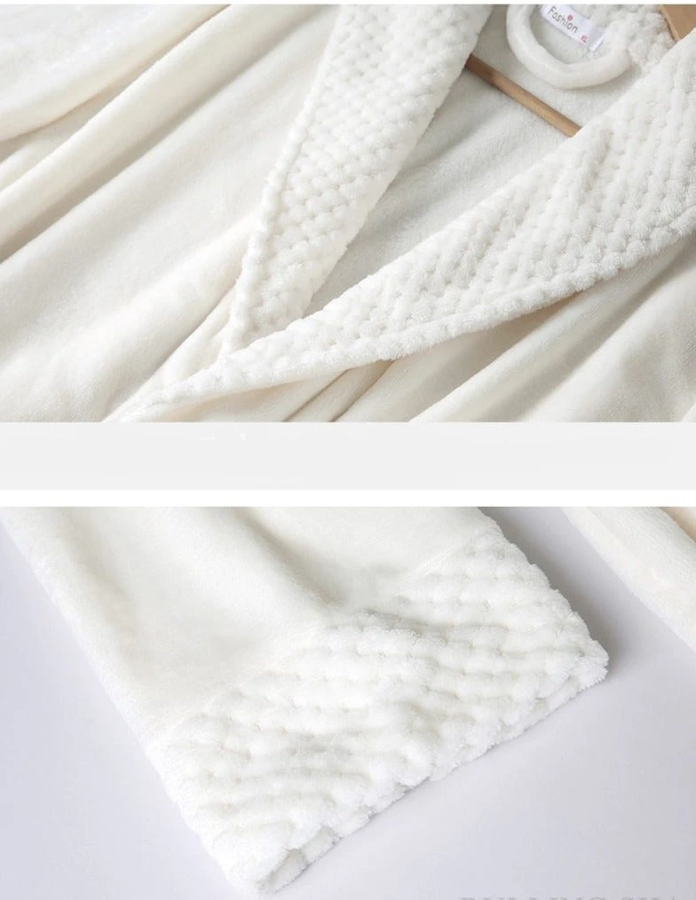 Les matières qui composent ce peignoir sont la polaire, le duvet et le velours. toutes les finitions ont été retravaillé en précision.
