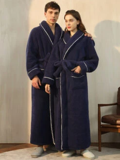 Optez pour un confort optimal dans un vĂŞtement chic avec le Peignoir Homme Bleu Marine Â