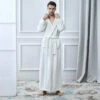 Les matières qui composent ce peignoir sont la polaire, le duvet et le velours. toutes les finitions ont été retravaillé en précision.