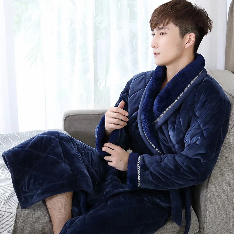 Si vous cherchez un cadeau spécial pour votre père, votre mari ou votre frère, notre peignoir de luxe pour homme en velours bleu marine est un choix parfait.