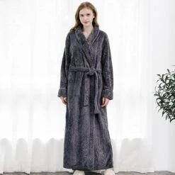 Un Peignoir Long Femme Gris douillet pour se détendre une fois à la maison