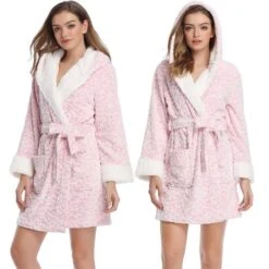 Un Peignoir Pilou Pilou Court Rose douillet pour se détendre une fois à la maison
