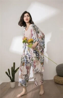 Cet ensemble Ă©lĂ©gant et agrĂ©able est idĂ©al pour les dimanches de paresse. Chic et confortable, craquez pour ce peignoir pyjama. À porter de nuit comme de jour, c’est un incontournable dans sa garde-robe !Â
