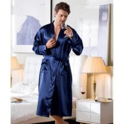 Il a convaincu, et il continuera Ă convaincre. Ce pyjama en satin, constituĂ© d’un peignoir et d’un pantalon, sont le match parfait pour des nuits dĂ©tentes et cosy.