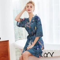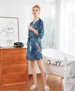 Douceur et volupté, apaisement et bien être, voilà ce que vous attend avec le Peignoir Satin Oiseau