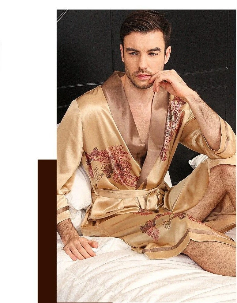 PROFITEZ DâUNE SOIRĂE RĂVĂE ET UNIQUE RECOUVERT DUÂ Peignoir Soie Japonais Homme