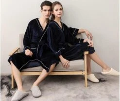 Profitez d’un moment cocooning unique avec le Peignoir Velours Bleu Marine