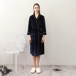 Profitez d’un moment cocooning unique avec le Peignoir Velours Bleu Marine