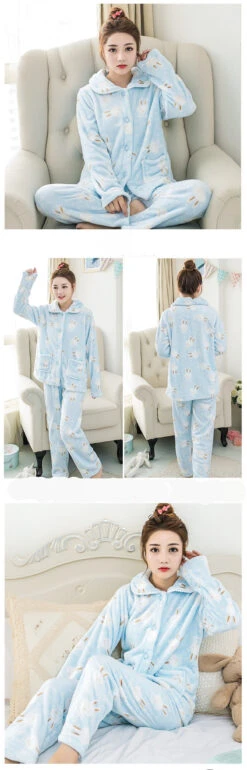 Super cosy, ce pyjama confortable et moelleux ne vous quittera plus ! IdĂ©al pour les frileux en quĂȘte de cocooning : avec ce pyjama, vous n’aurez plus froid. En plus, il est ultra mignon avec ses petits lapins blancs. đ Quoi demander de plus finalement ?Â