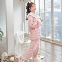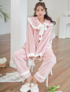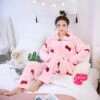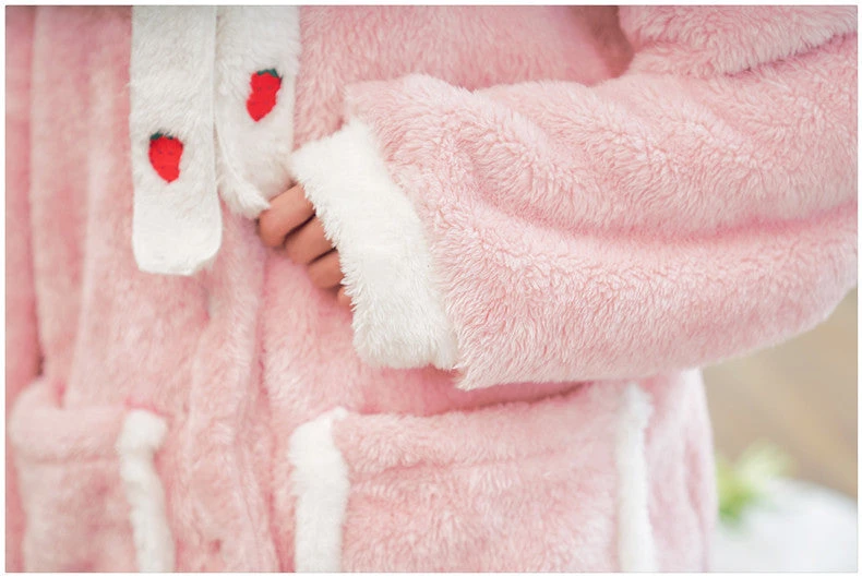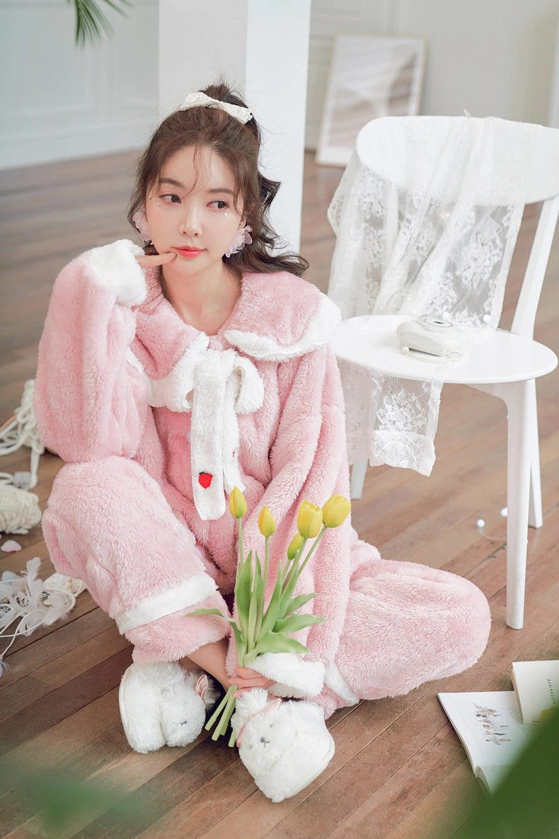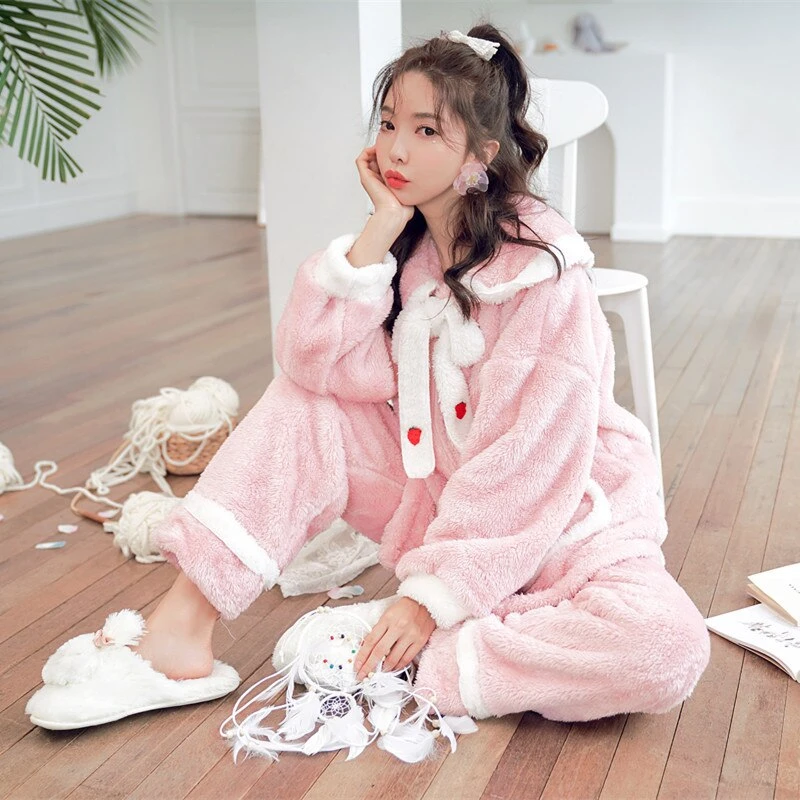 Cet ensemble cosy est adorable. Avec son col style marin, ses petites fraises et ses larges poches, impossible de ne pas craquer ! 🍓 Confortable et moelleux, le pyjama se porte en toutes circonstances.Â
