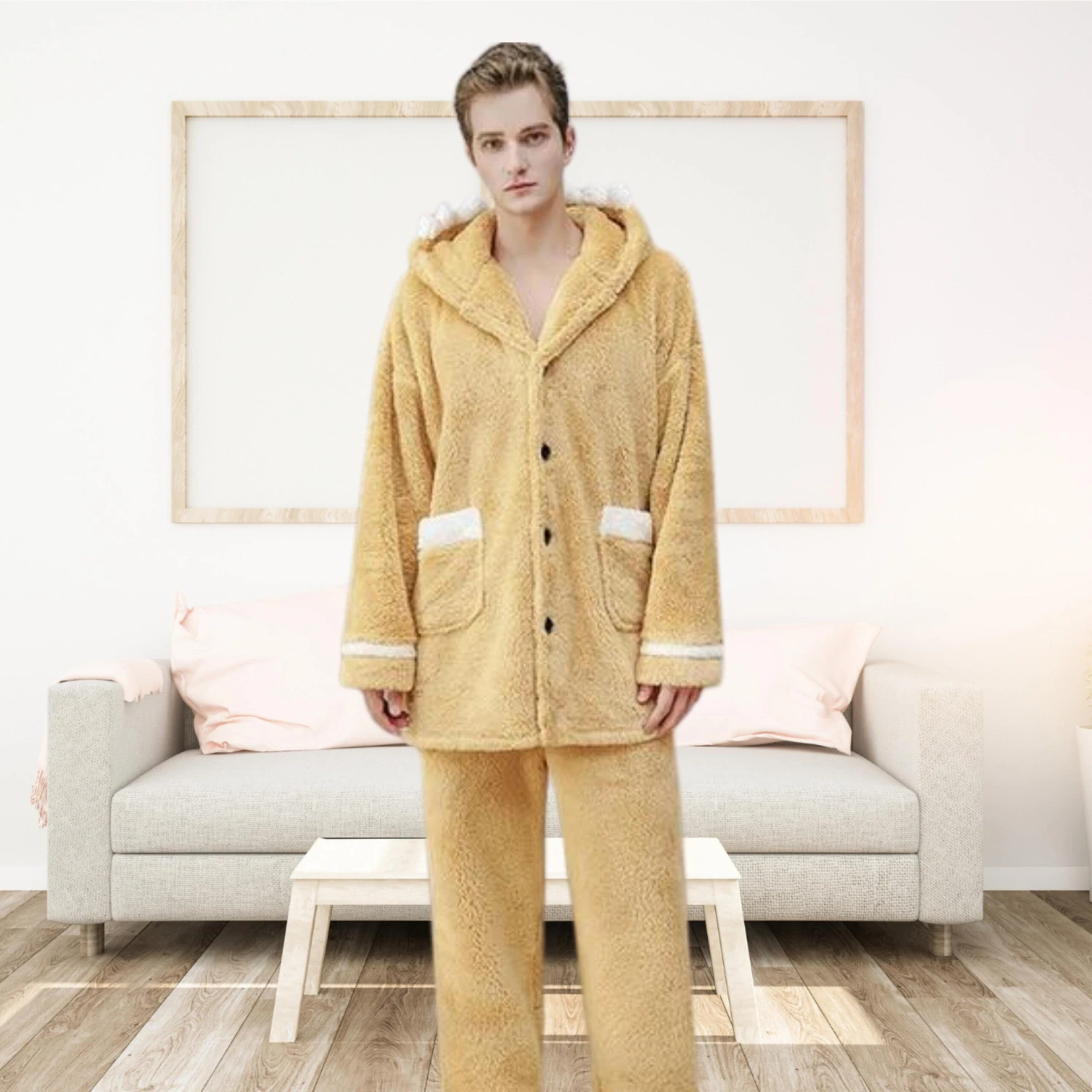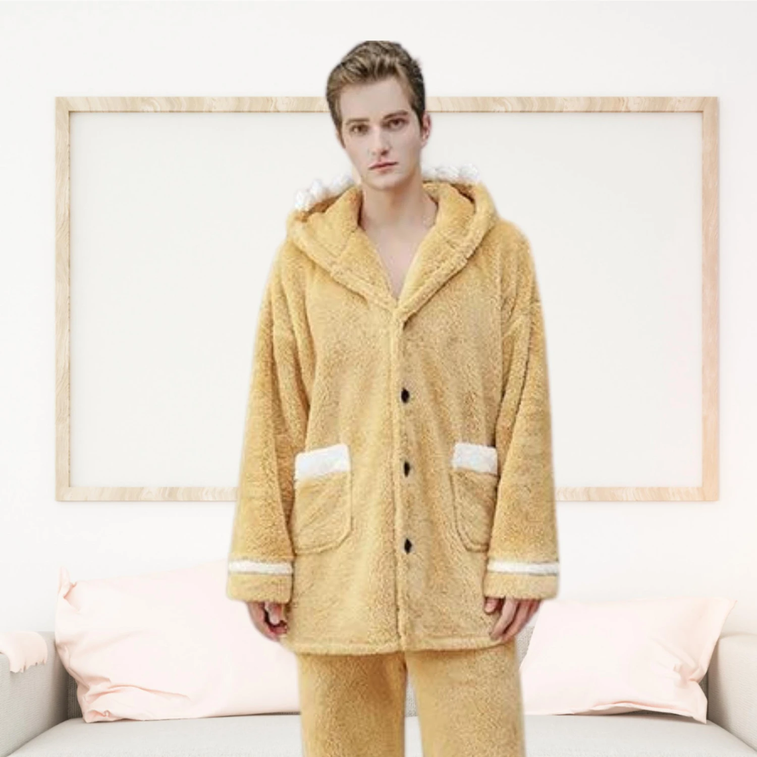 UNE JOURNÉE COCOONING COMMENCE AVEC LE PYJAMA PILOU HOMME JAUNE