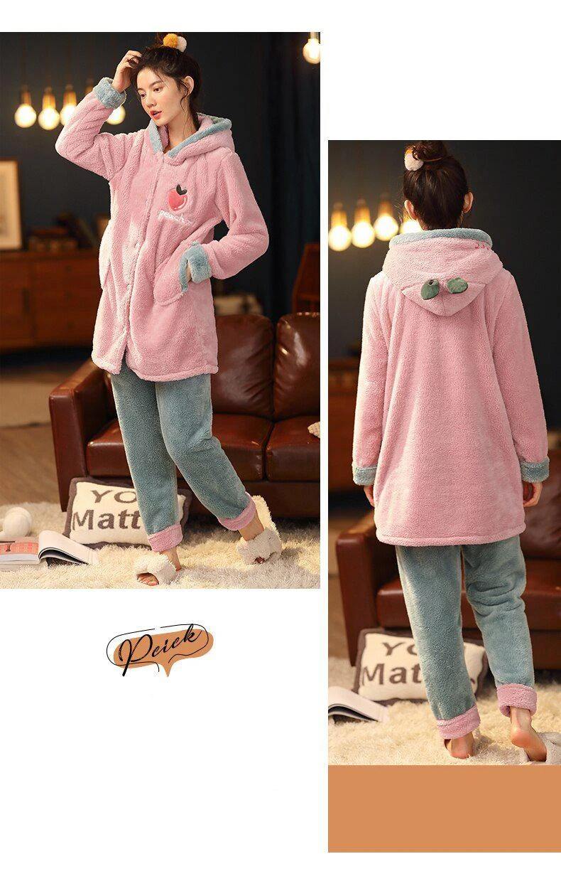 Le pyjama pilou pilou rose et gris favorise toute activité douce et chaleureuse comme Netflix et les câlins. Assez large, assez doux, bien chaud, et surtout bien cocooning, il est une invitation naturelle au repos, à la détente, dans le meilleur des conforts.Â