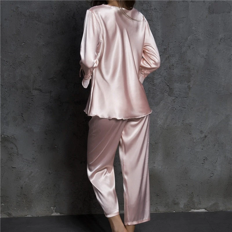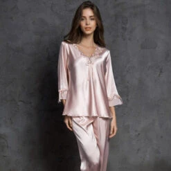 Craquez pour ce joli et Ă©lĂ©gant pyjama. Après une longue journĂ©e de travail, privilĂ©giez plutĂ´t les vĂŞtements amples et confortables. Bien sĂ»r, vous pouvez aussi dĂ©cider de porter cet ensemble toute la journĂ©e, pourquoi s’en priver ? Le bien-ĂŞtre, c’est sur votre boutique prĂ©fĂ©rĂ©e Peignoir Avenue.Â