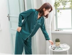 Offrez-vous ce Pyjama Satin Femme Vert pour ouvrir vos cadeaux de Noël avec confort et élégance.