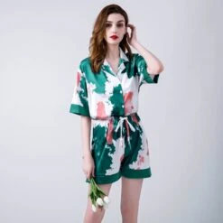 Un pyjama qui ne ressemble pas à un pyjama ! Une tenue élégante et légère pour pouvoir se détendre après une longue journée. On prend soin de vous même en été sur Peignoir Avenue.